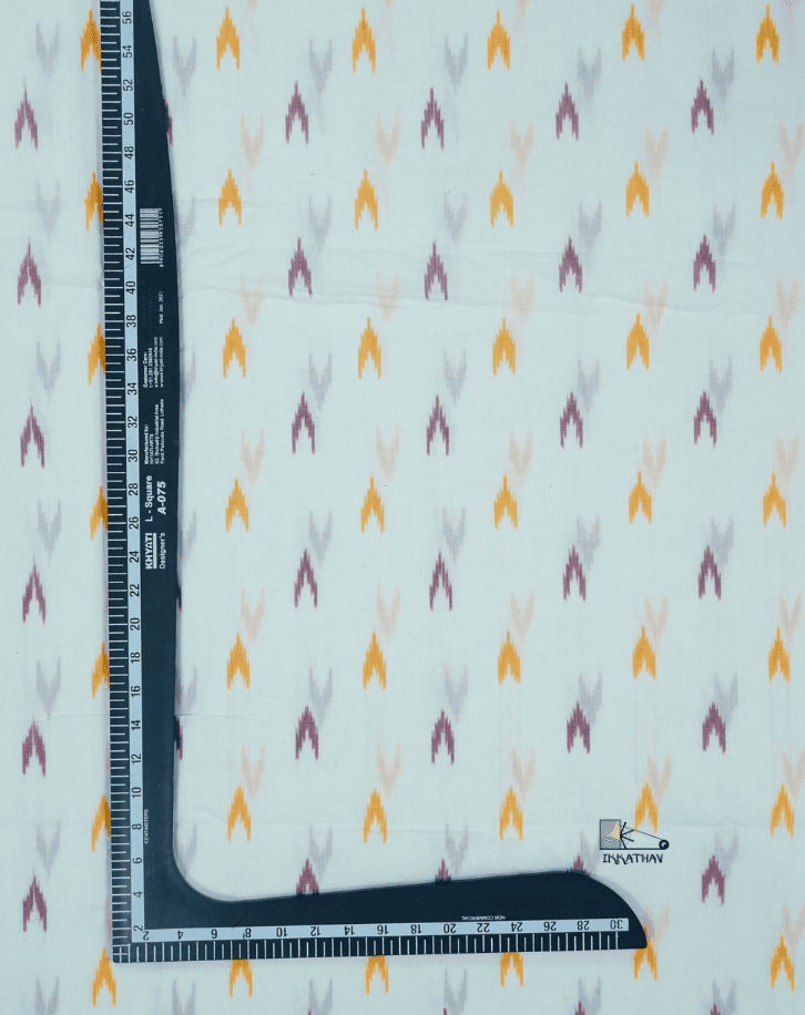 Mercerised Ikkat is made from mercerised cotton yarn. Mercerisation is a special treatment given to cotton yarn (using a controlled alkali process) before weaving, which improves the yarn’s quality.