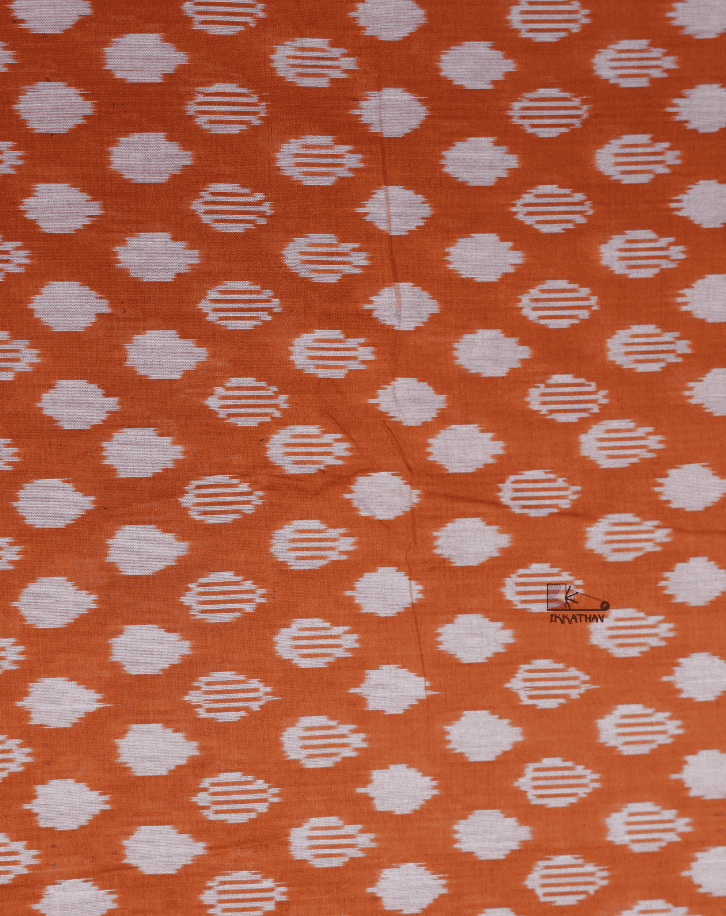 Mercerised Ikkat is made from mercerised cotton yarn. Mercerisation is a special treatment given to cotton yarn (using a controlled alkali process) before weaving, which improves the yarn’s quality.